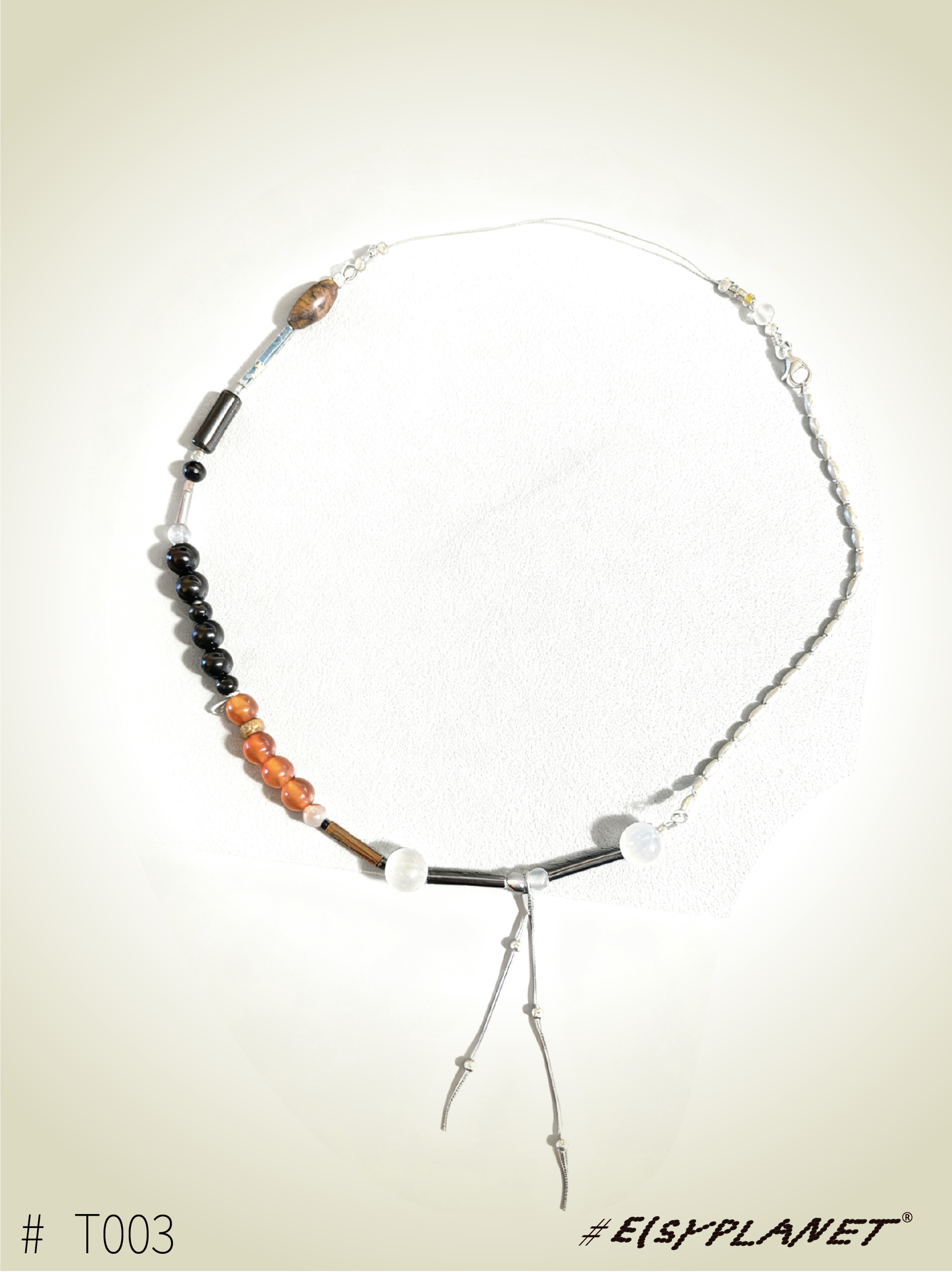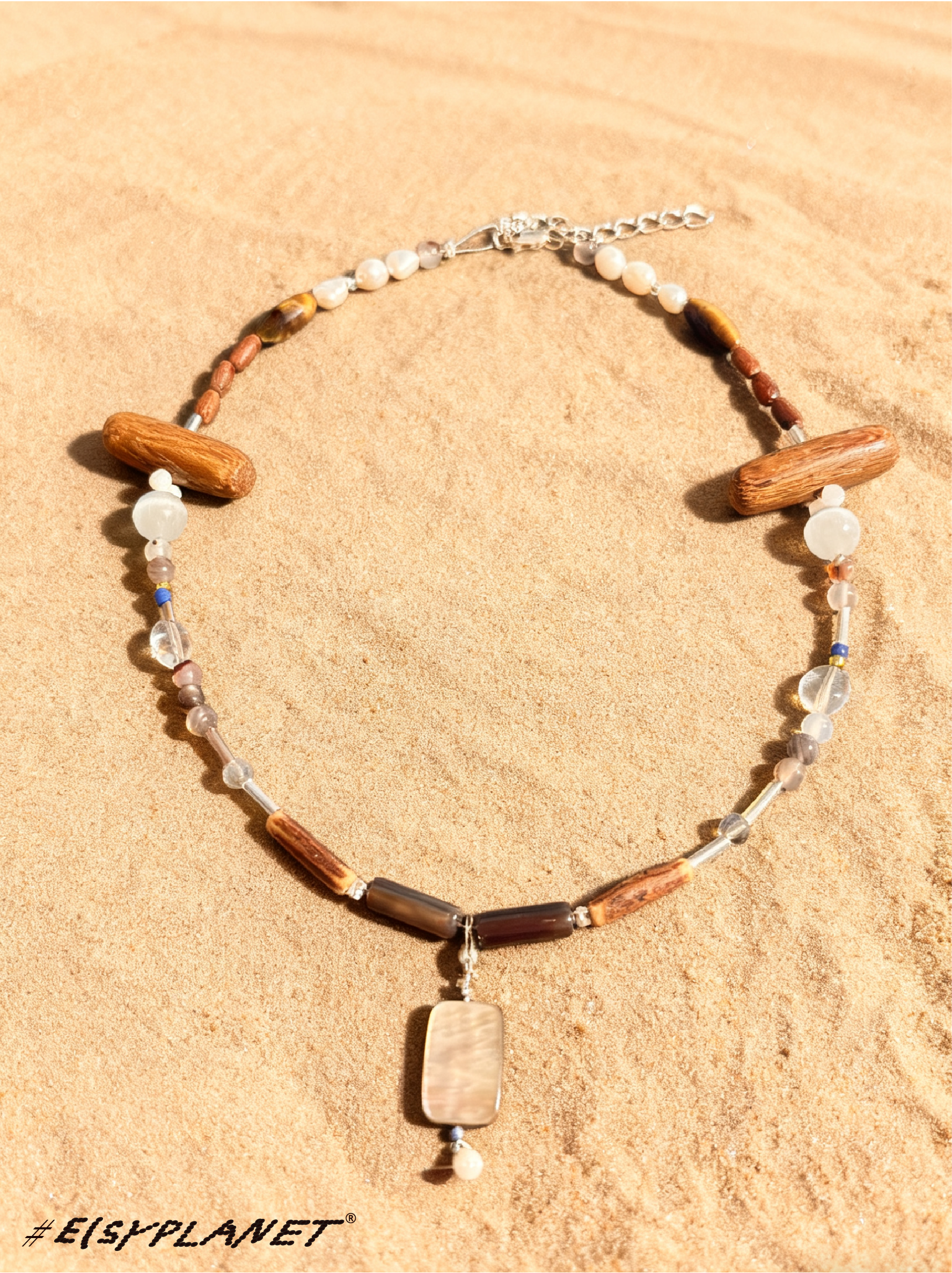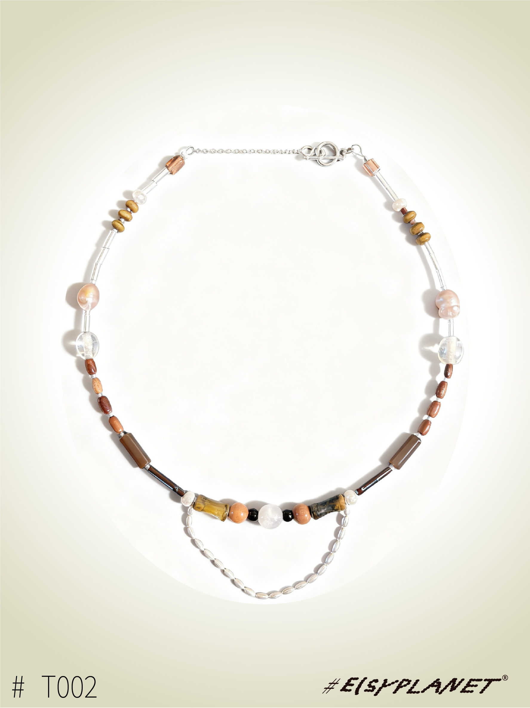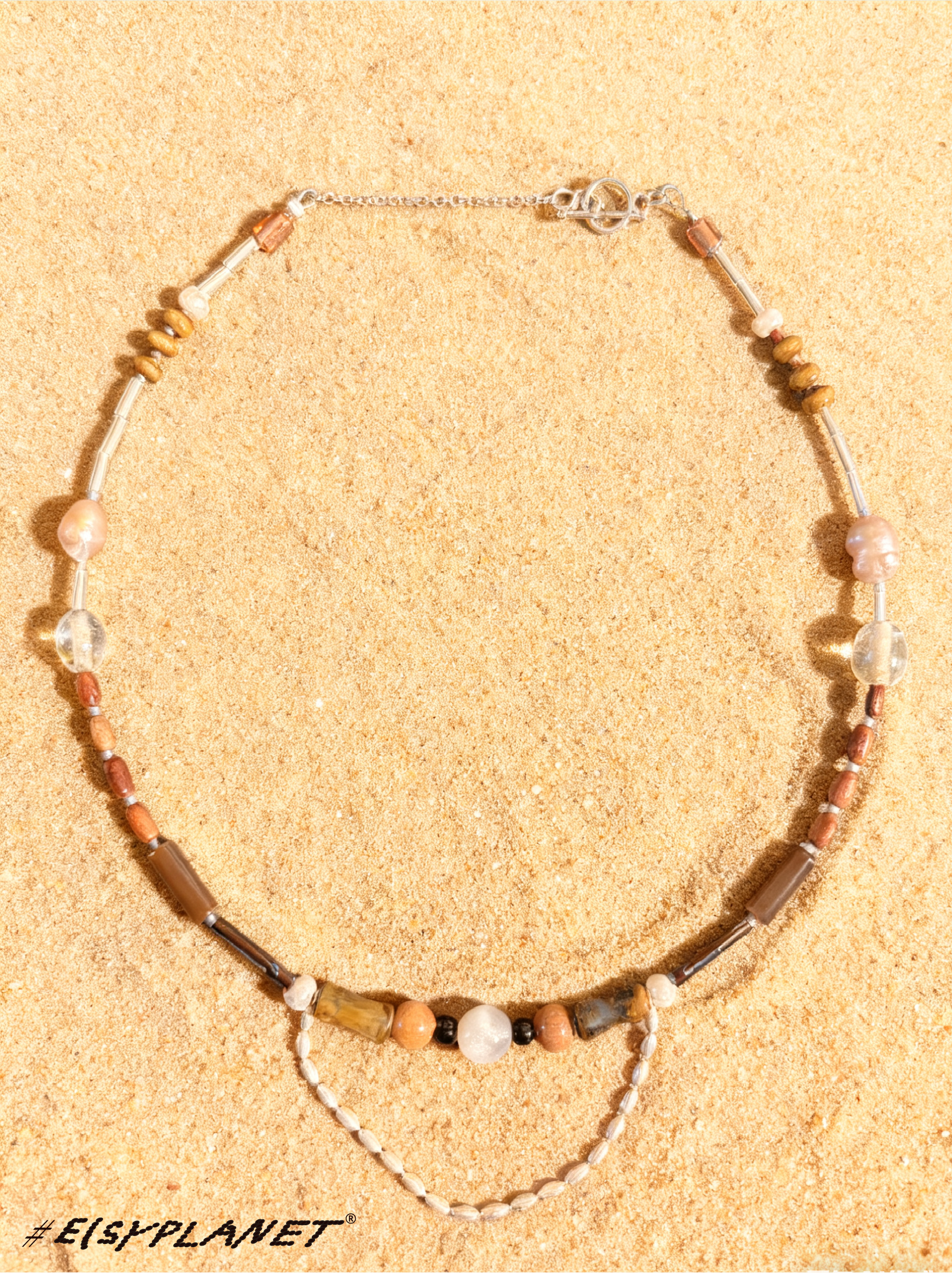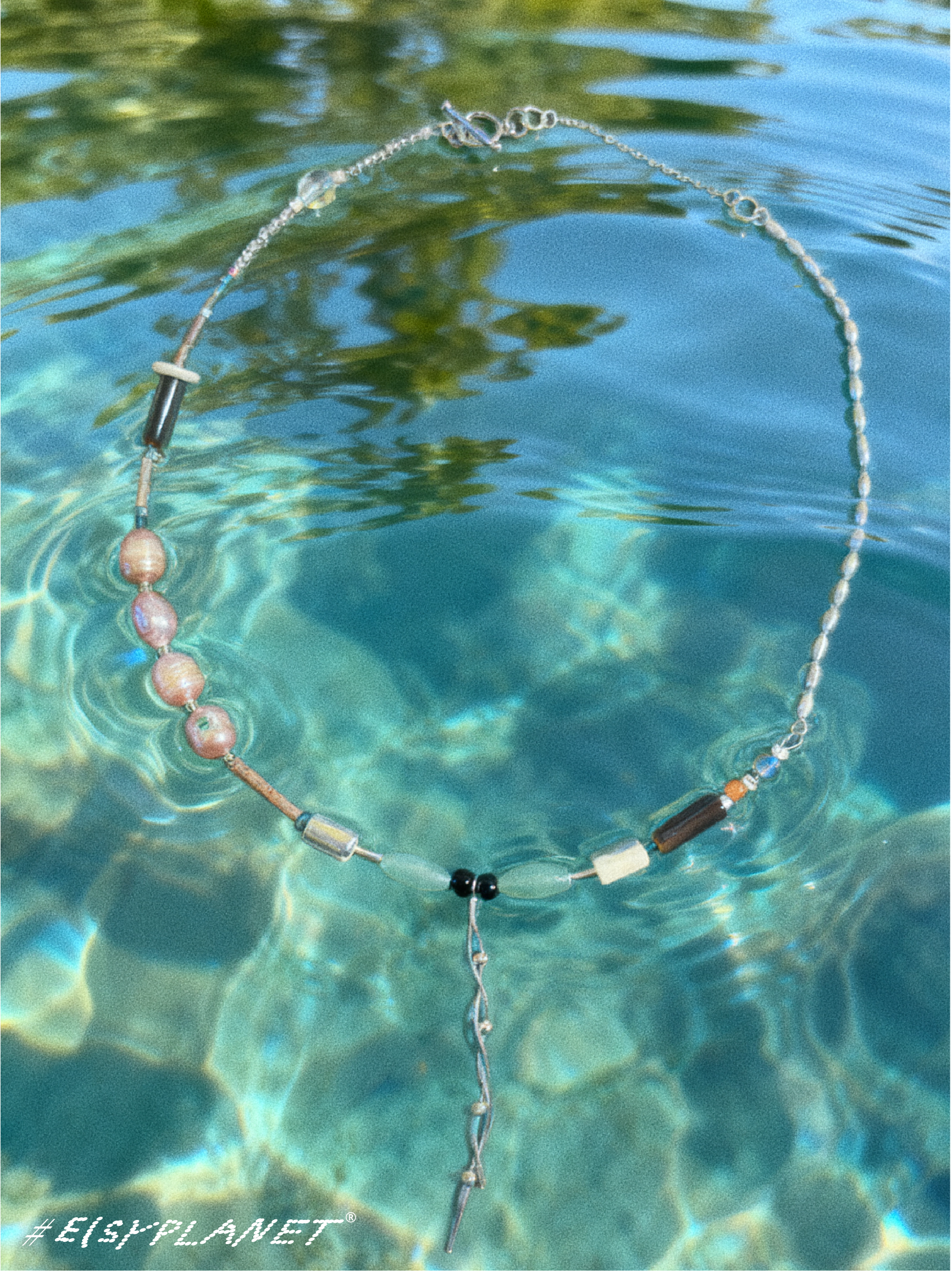 # Brine Thread draws inspiration from the ocean and saltwater, weaving together beads, silver, agate, jade, glass, wood, Czech seed beads, and shells. Each piece carries a subtle rhythm, celebrating the tactile collisions and harmony of its materials.