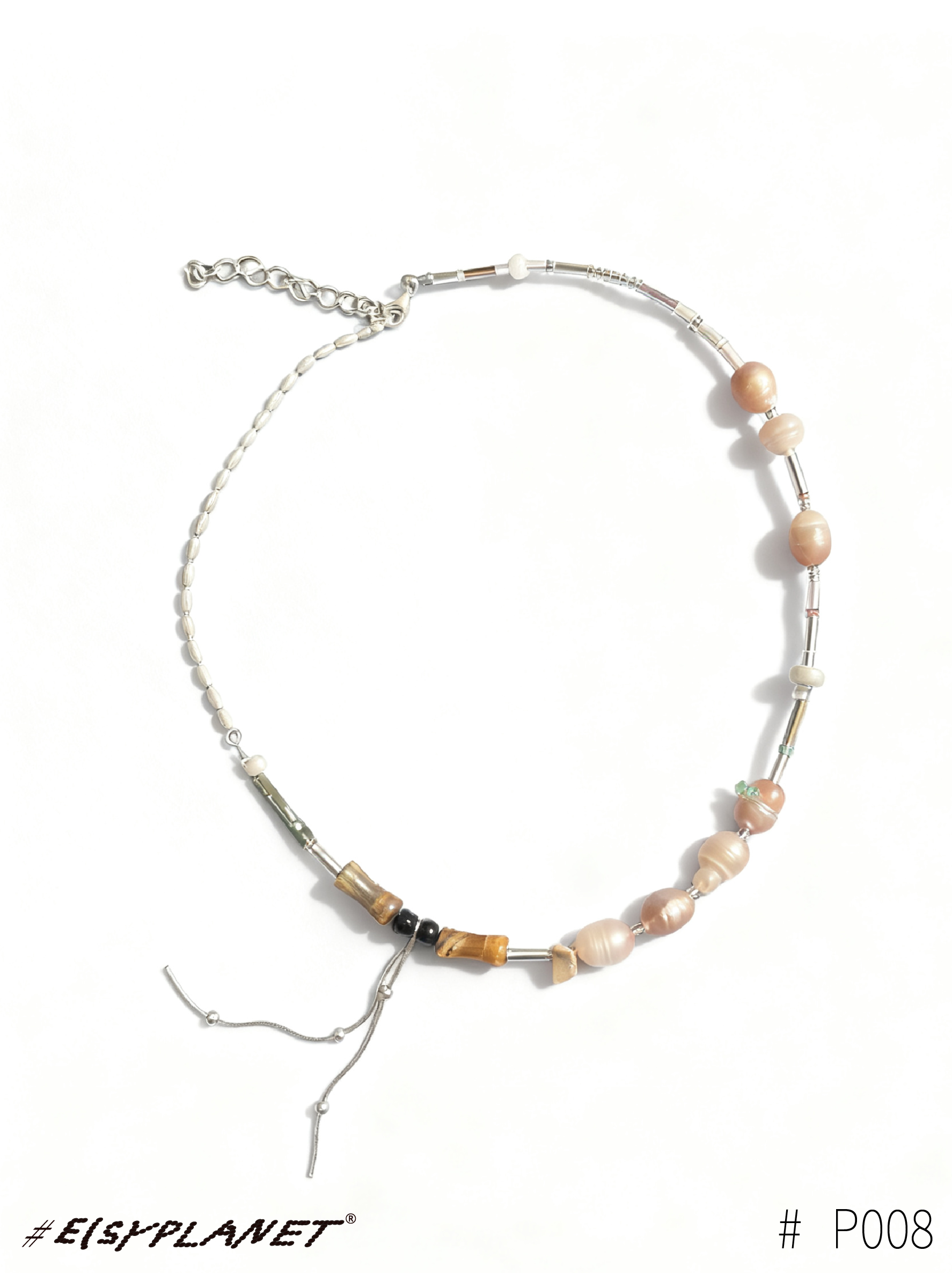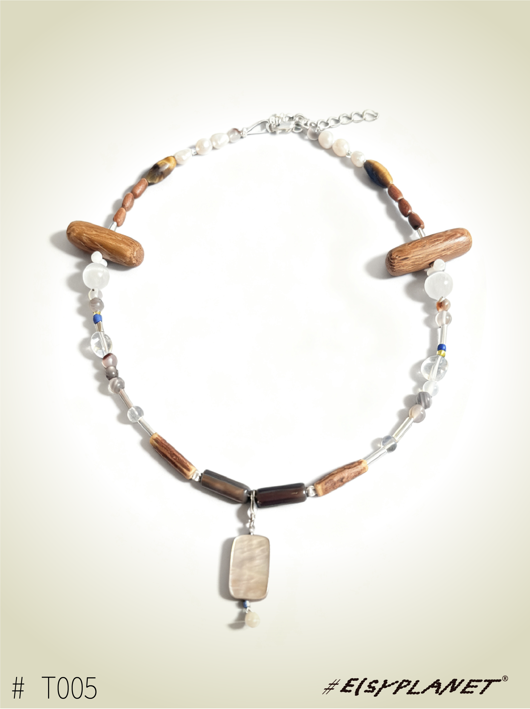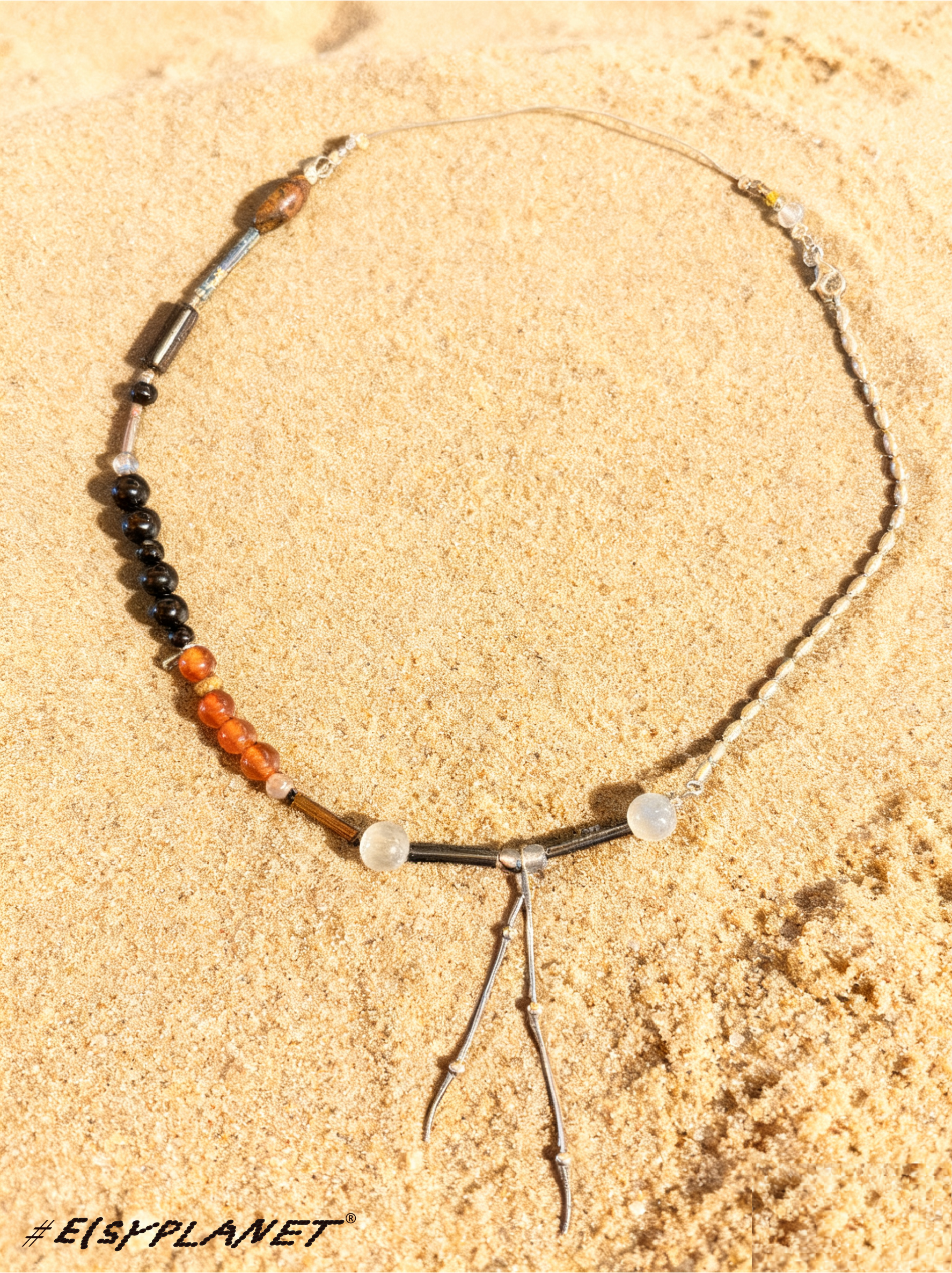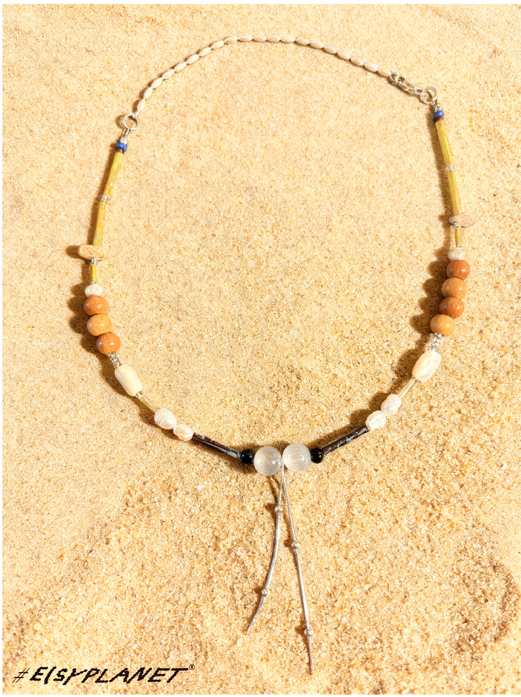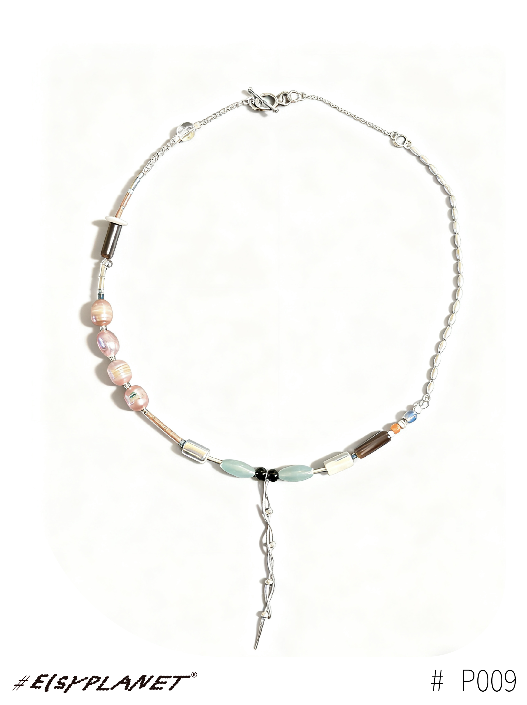 # Brine Thread draws inspiration from the ocean and saltwater, weaving together beads, silver, agate, jade, glass, wood, Czech seed beads, and shells. Each piece carries a subtle rhythm, celebrating the tactile collisions and harmony of its materials.