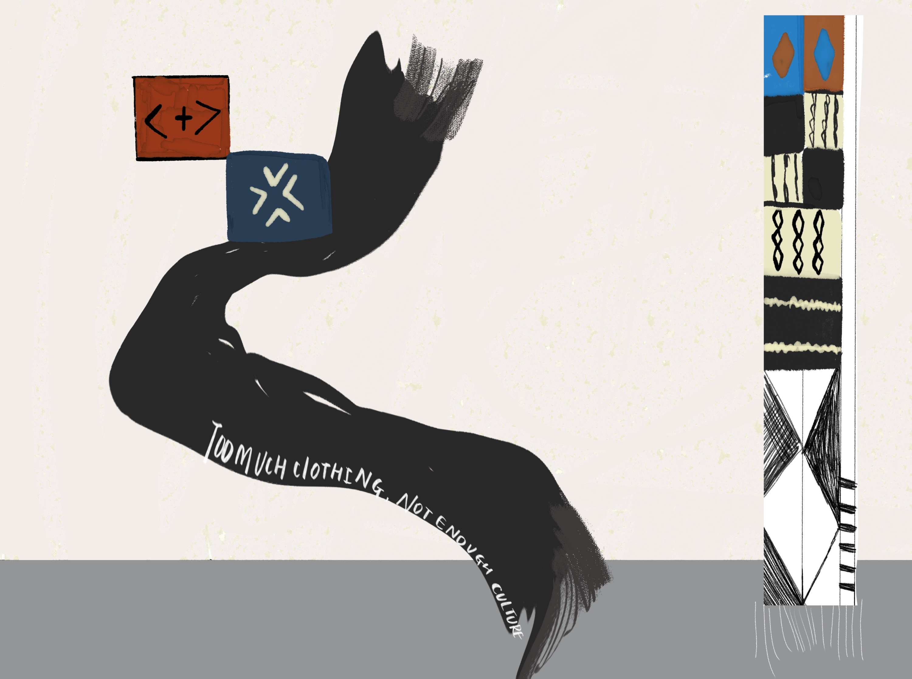 Dead White Man’s Clothes is the translation of the Akan expression Obroni Wawu, which is a common term for secondhand clothes in Ghana meaning ‘the white man has died clothes.’ This expression comes from the idea that someone would have to die to give up so much stuff, implying that the concept of excess was foreign.